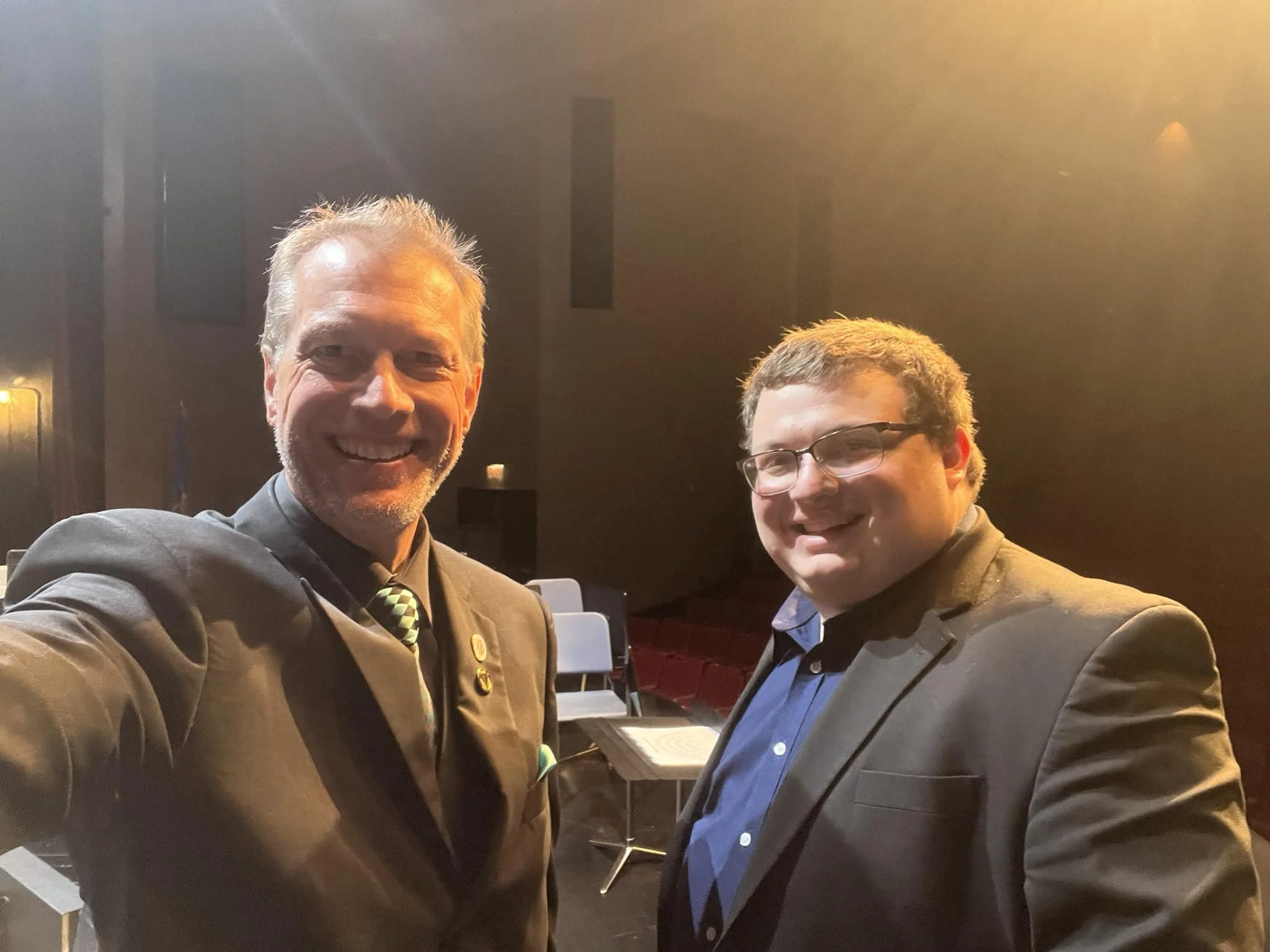 Robert Pippin and Benjamin N Brody after the premiere performance of Perches in the Soul: A Symphony for Band on April 26, 2024.